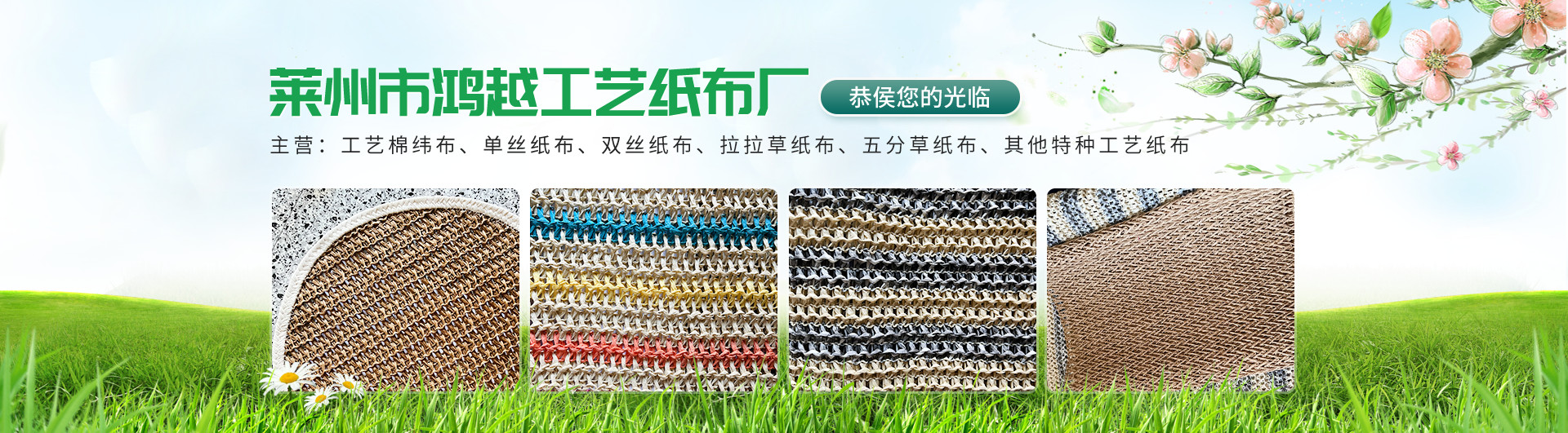 萊州市鴻越工藝紙布廠是專業生產工藝棉緯布、單絲紙布、雙絲紙布、拉拉草紙布、五分草紙布、其他特種工藝紙布的企業,技術力量雄厚,生 產能力強大,商業信譽保證,產品工藝先進、質量可靠、色澤齊全、品種多樣,并且具有強大的研發機構,保證及時、高質量地滿足客戶的意愿要求,此占“天時”之利。本廠地處青島、濰坊、煙臺···